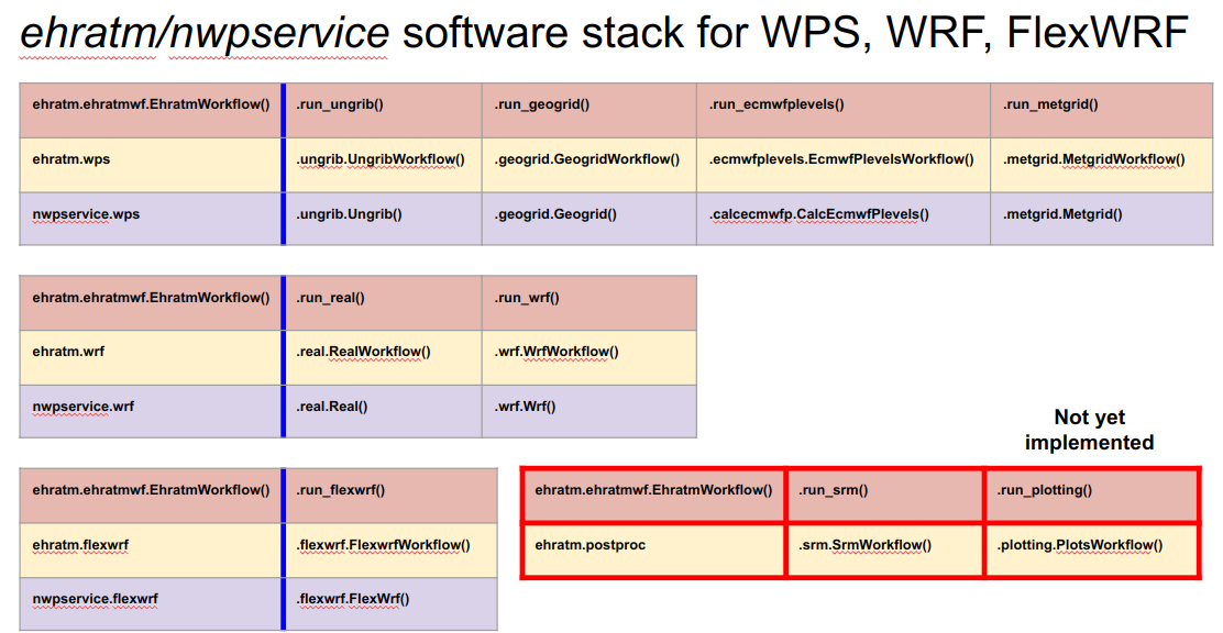 The top layer in the EHRATM software stack is ehratmworkflow. Underneath this layer there has been no workflow implied in anything that we built.